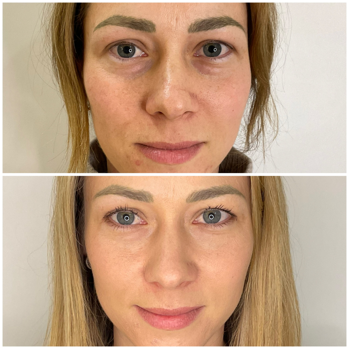 Application of supraperiosteal boluses with a needle, tear trough and palpebromalar groove